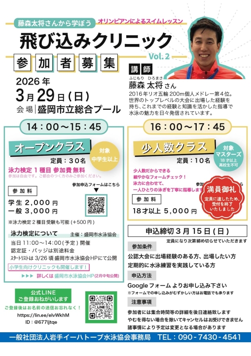 元オリンピック競泳選手・藤森太将さんのスイムクリニックが今年も盛岡で開催決定!