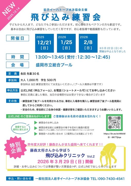 - 2025.02.09 飛び込みクリニックについての広告を掲載いたしました(オリンピアン藤森太将さんによる特別練習会)